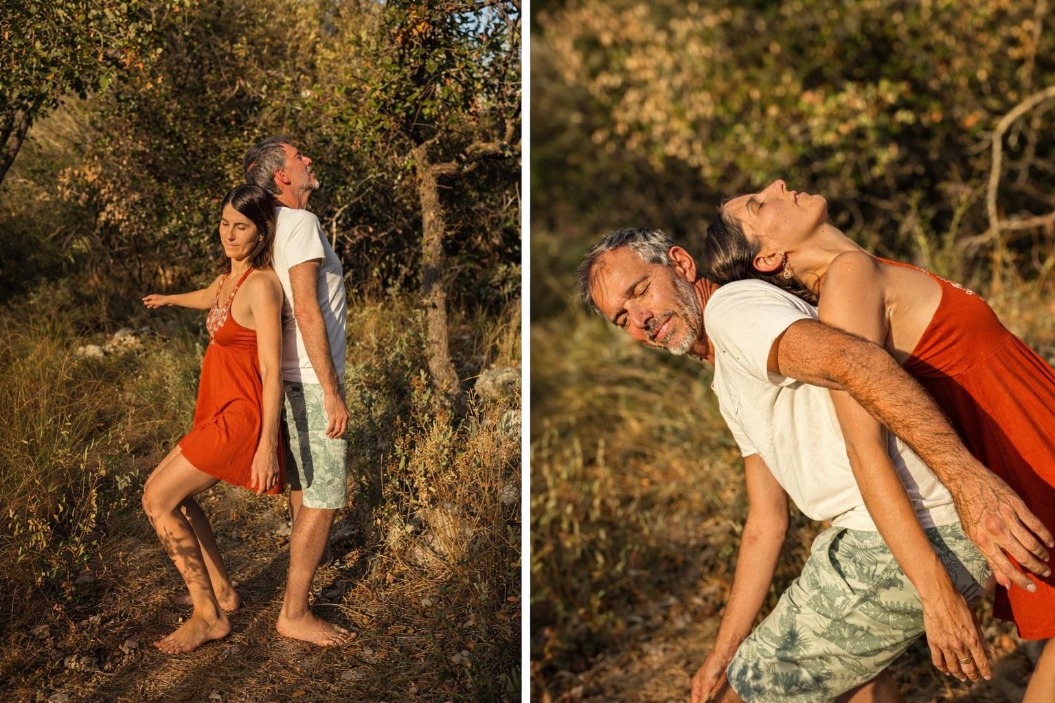 Christophe et Magali partagent une passion pour le mouvement et la danse. Tous deux pratiquent le Contact Improvisation, aiment utiliser le mouvement comme un moyen de rencontre et de créativité.